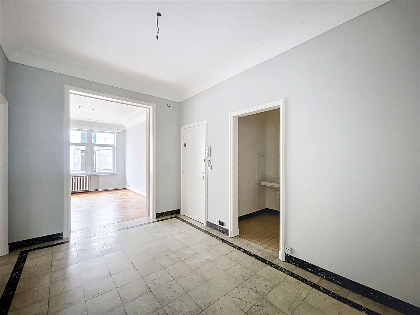 Dès l’entrée, vous serez charmé par la superbe hauteur sous plafond et le parquet en bâtons rompus qui confèrent à ce bien une élégance intemporelle.